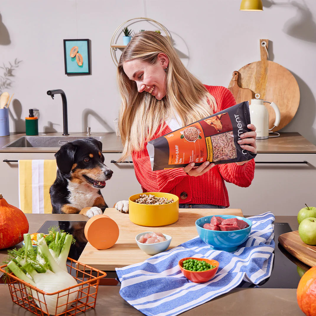 Totalmente a vuestro gusto: ya sea como un sabroso topping, mitad y mitad, o como comida completa, nuestro BARF encanta en todas sus versiones.